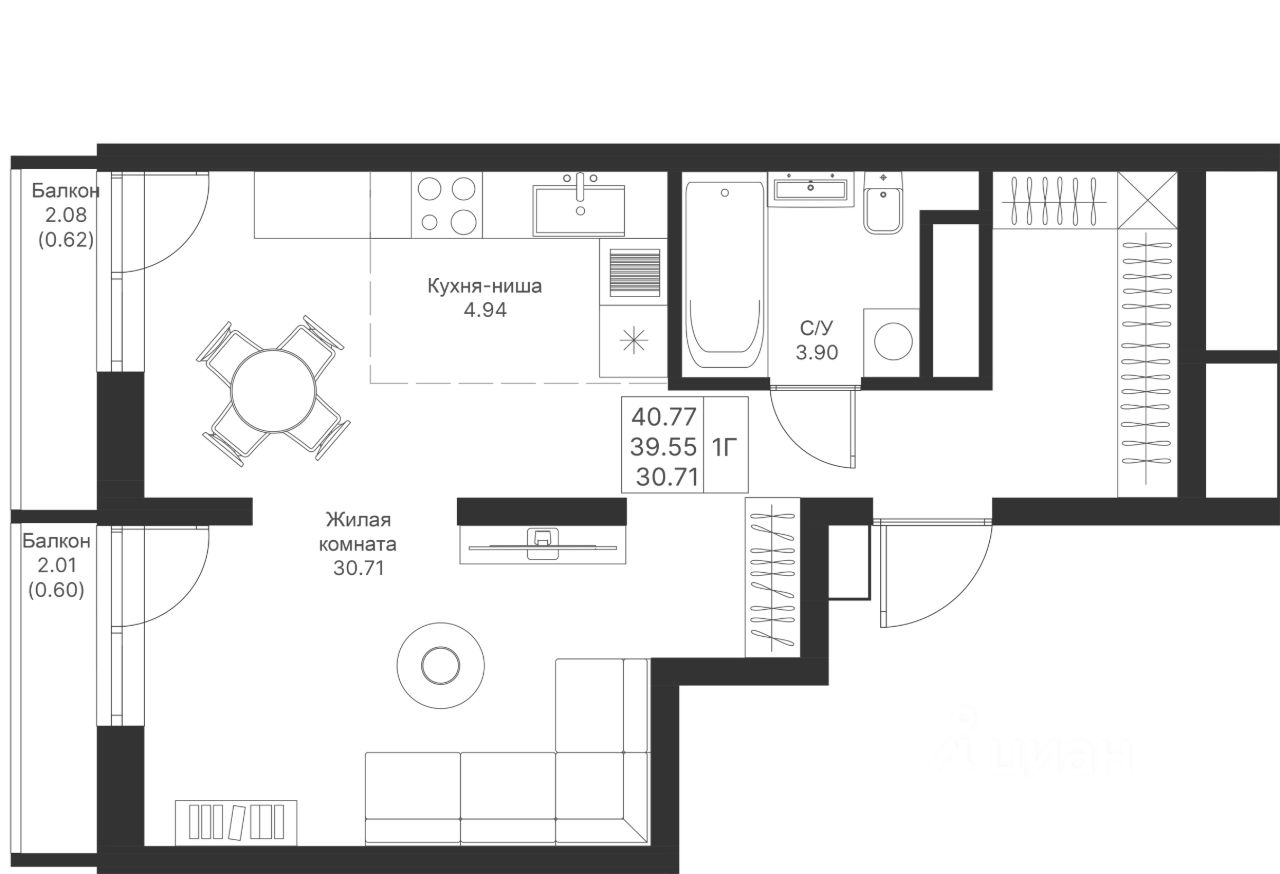 Продается 1-комнатная квартира 765 площадью 40,77 кв.м на 15 этаже в строящемся доме проекта "Мой Ритм" компании "Ак Барс Дом".