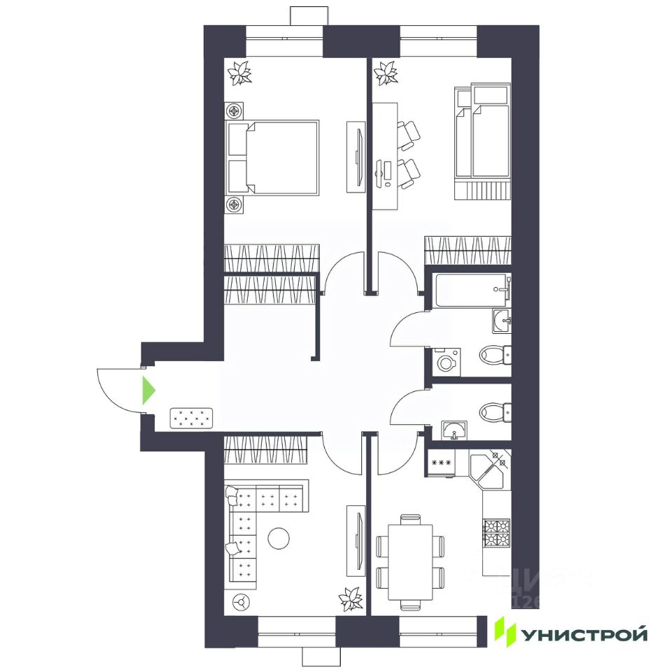 Бульвар, приватные дворы, комфортная переменная этажность, стильные холлы. В проекте представлено большое разнообразие планировочных решений: студии, европланировки и полноценные 1-, 2-, 3-комнатные. Для ценителей частных пространств мы подготовили миксы загородных домов и городских форматов: квартиры с личным входом с улицы, коллекционные варианты с террасами, а также мастер-спальни с ванными, гардеробными и эксклюзивные варианты на последних этажах с видом на зелёные окрестности района.
