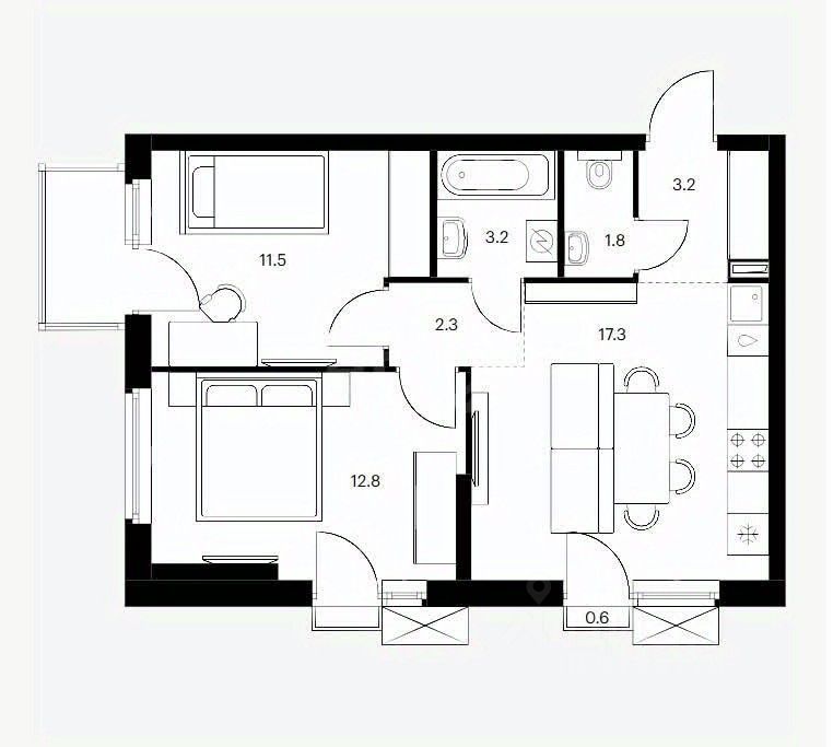 Продается квартира (евро3), кухня гостиная и 2 изолированные спальни.