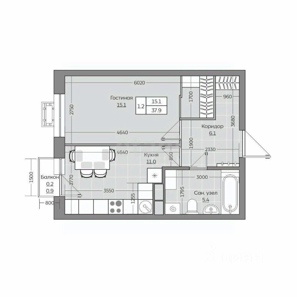 Объект: Переуступка права требования на квартиру общей площадью 37.97 кв. м.