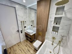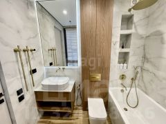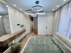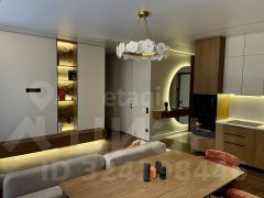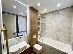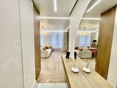 В квартире сделан дизайнерский ремонт с использованием дорогих материалов, на полу паркет, в зоне прихожей и в санузлах керамогранит, Стены идеально выровнены и покрашены, двери скртытого монтажа, увеличенной высоты, натяжной потолок с теневым профилем. Квартира продается со всей мебелью и техникой.