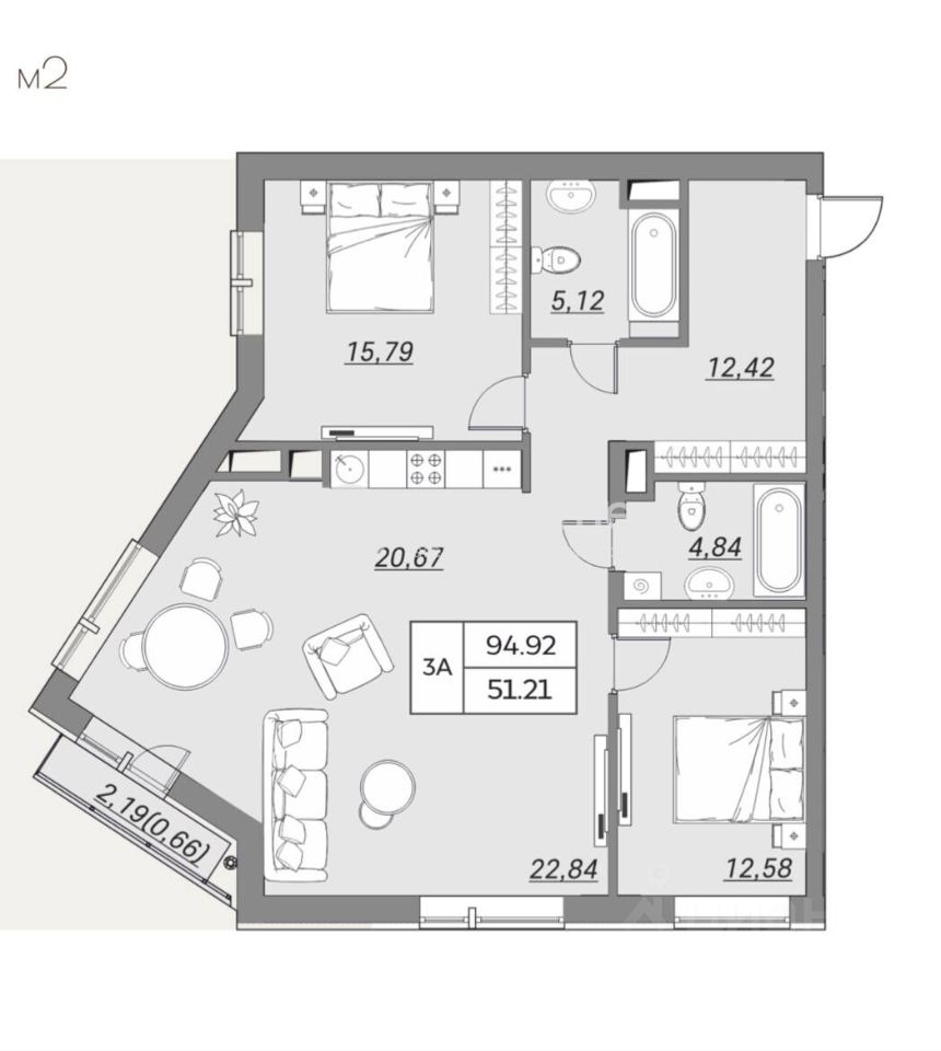 • Площадь: 94,52 м²