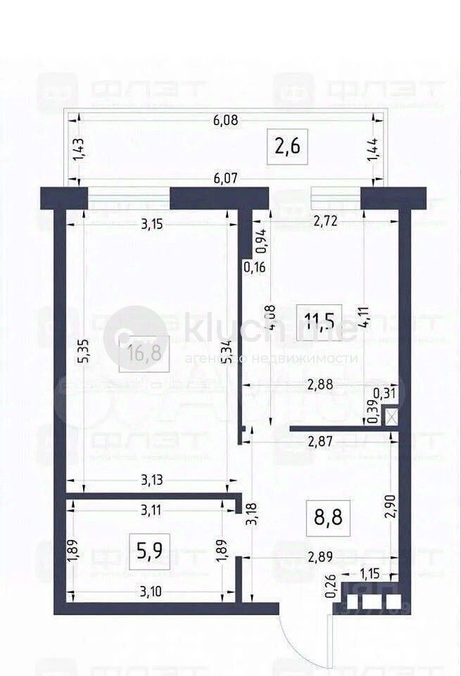 Площадь — 47.7 м², 14/19 этаж