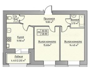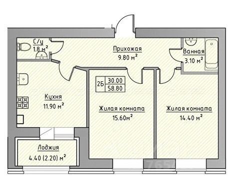 Объект 116405 ИНДИВИДУАЛЬНОЕ ОТОПЛЕНИЕ И ВИД НА ПАРКПродается светлая двухкомнатная квартира 59 кв.м в новом жилом комплексе Зеленая долина.