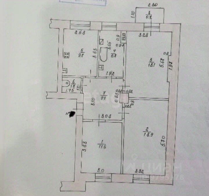 Площадь 77м2, 2-ой этаж 4-х этажного дома.