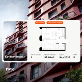 Продаётся 1-комн. квартира площадью 37,4 кв.м на 5 этаже 8 этажного дома (Корпус 1, Секция 1) проекта ПИК Ботаническая 3. Светлый просторный подъезд на уровне земли, функциональная планировка, большие окна, без отделки.