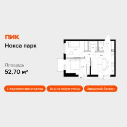 Продаётся 2-комн. квартира площадью 52,7 кв.м на 17 этаже 17 этажного дома (Корпус 10, Секция 1) проекта ПИК Нокса парк. Светлый просторный подъезд на уровне земли, функциональная планировка, большие окна, предчистовая отделка.