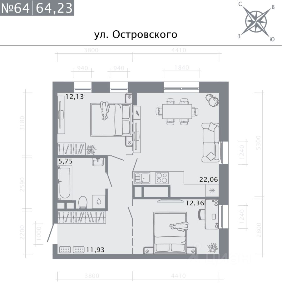 Продаётся 2-комнатная квартира в строящемся доме (Дом 5), срок сдачи: II-кв. 2026, общей площадью 64.23 кв.м., на 4 этаже. Costura Town расположен в историческом районе Казани "Суконная Слобода". Развитая инфраструктура района обеспечивает высокое качество жизни и неограниченные возможности. Торговые и Бизнес-центры, государственные и административные учреждения, лучшие школы и ВУЗы, парки и скверы, кафе и рестораны - всё находится здесь.