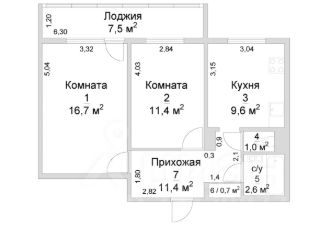 Площадь комнат: 16,7 кв.м, 11,4 кв.м.
