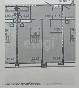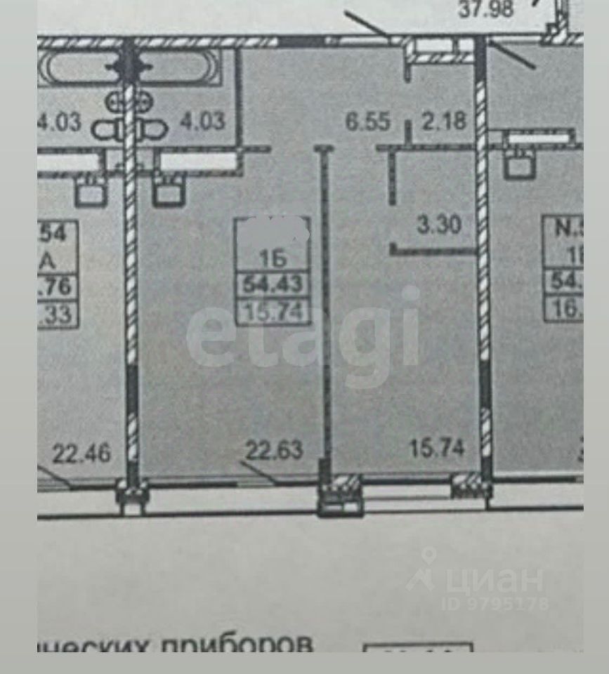 Продается просторная 1-комнатная квартира площадью 54,6 м² в жилом комплексе "Времена года".