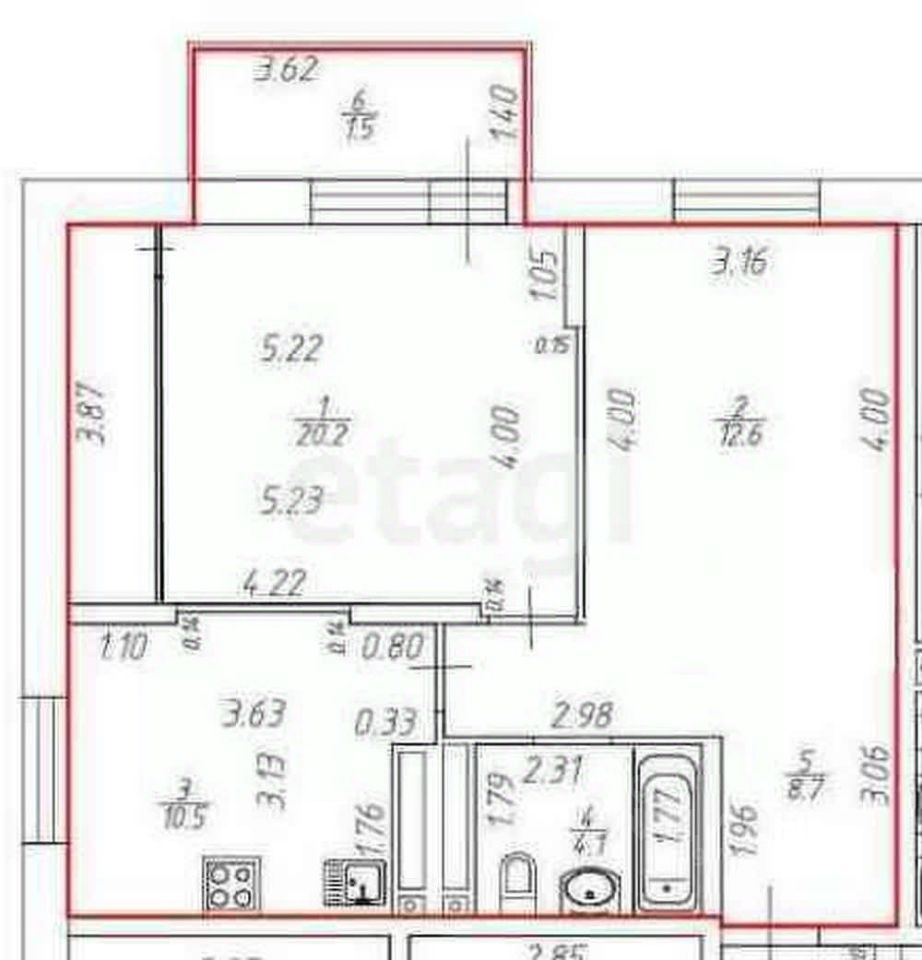 Общая площадь: 56,9 м²