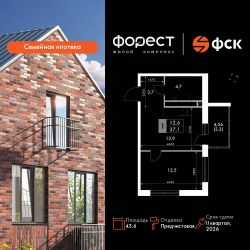 Продаётся 1-к квартира номер 36 общей площадью 43.6 кв.м. на 5-м этаже 7 этажного здания. Отделка Whitebox. Цена с учётом скидки.