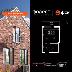 Продаётся квартира-студия номер 54 общей площадью 27.6 кв.м. на 6-м этаже 7 этажного здания. Отделка Whitebox. Цена с учётом скидки.