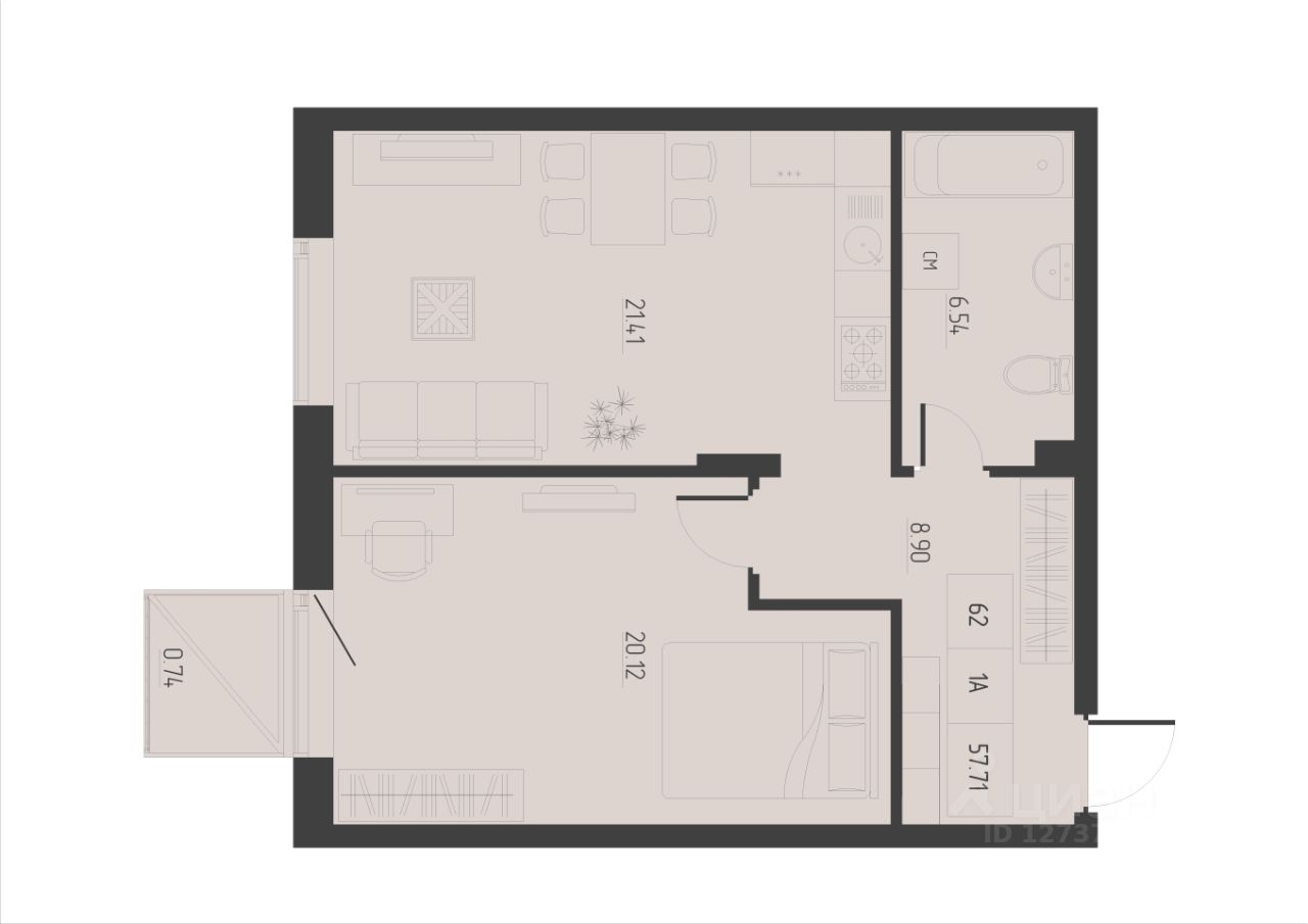 1 комнатная квартира площадью 57.74 кв.м. на 5 этаже в строящемся жилом комплексе премиум-класса "Академик".