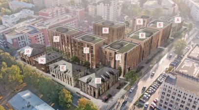 "Академик" - это настоящее произведение архитектурного искусства, состоящий из 9 корпусов разной этажности от 3-7 этажей и 2-х уровневого подземного паркинга на 277 машин.