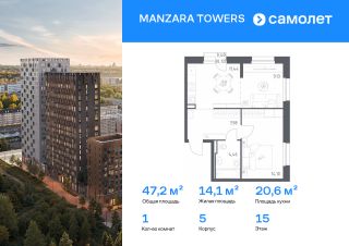 Строим кварталы для жизни с заботой о будущем. Предлагается 1-комнатная квартира комфорт-класса 47,23 кв.м в корпусе 5 на 15 этаже, в MANZARA TOWERS