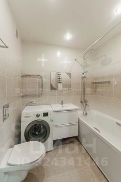 Санузел в кафеле выполнен в современном стиле и не потребует ремонта.