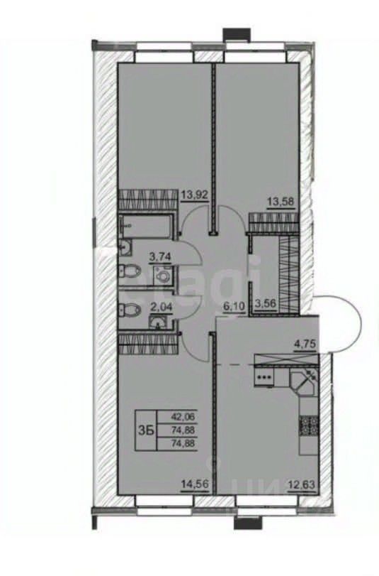 Свобода вместо суеты: Просторная 3-комнатная планировка, которую вы обустроите под себя. Рабочий кабинет, гостевая для друзей, детская — всё возможно.