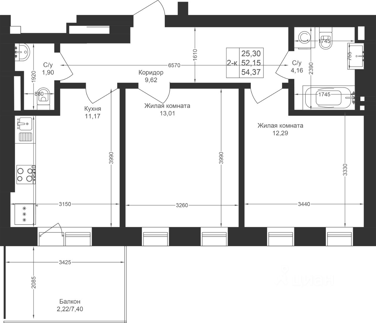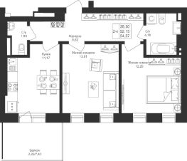 Продается 2-комнатная квартира 39 площадью 54,37 кв.м на 4 этаже в строящемся доме проекта "Новый свет" компании "Ак Барс Дом".