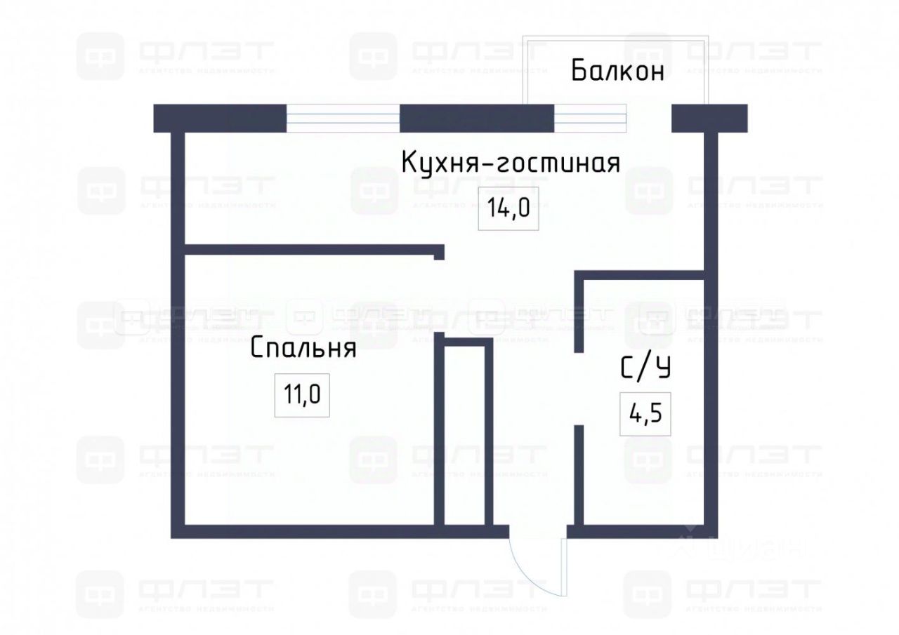 Планировка:Общая - 38,9 кв.м.(по СНИПу) 41,2 кв.м.(по ЖК РФ)Комната -14,2 кв.м.Кухня- 11,3 кв.м.