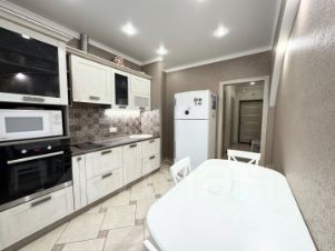 В квартире сделан качественный ремонт с применением современных материалов. Ремонт делали для себя. Просторная кухня с выходом на лоджию. Раздельный санузел и отдельная гардеробная комната.