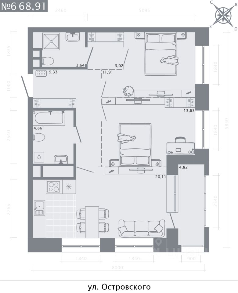 Продаётся 2-комнатная квартира в строящемся доме (Дом 3), срок сдачи: I-кв. 2026, общей площадью 68.91 кв.м., на 2 этаже. Costura Town расположен в историческом районе Казани "Суконная Слобода". Развитая инфраструктура района обеспечивает высокое качество жизни и неограниченные возможности. Торговые и Бизнес-центры, государственные и административные учреждения, лучшие школы и ВУЗы, парки и скверы, кафе и рестораны - всё находится здесь.
