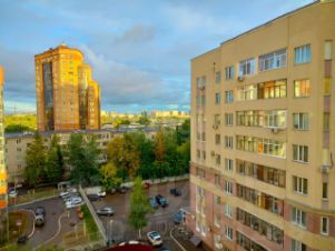 Вид из окон во двор. Двор огорожен, видеонаблюдение, детская площадка, парковка.
