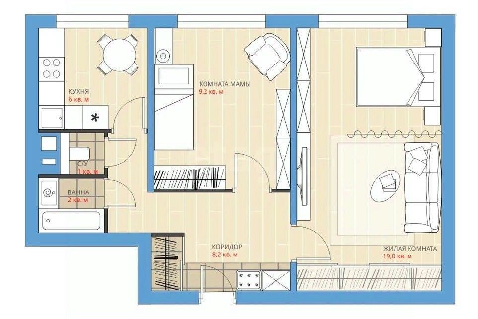 Общая площадь: 42кв.м.