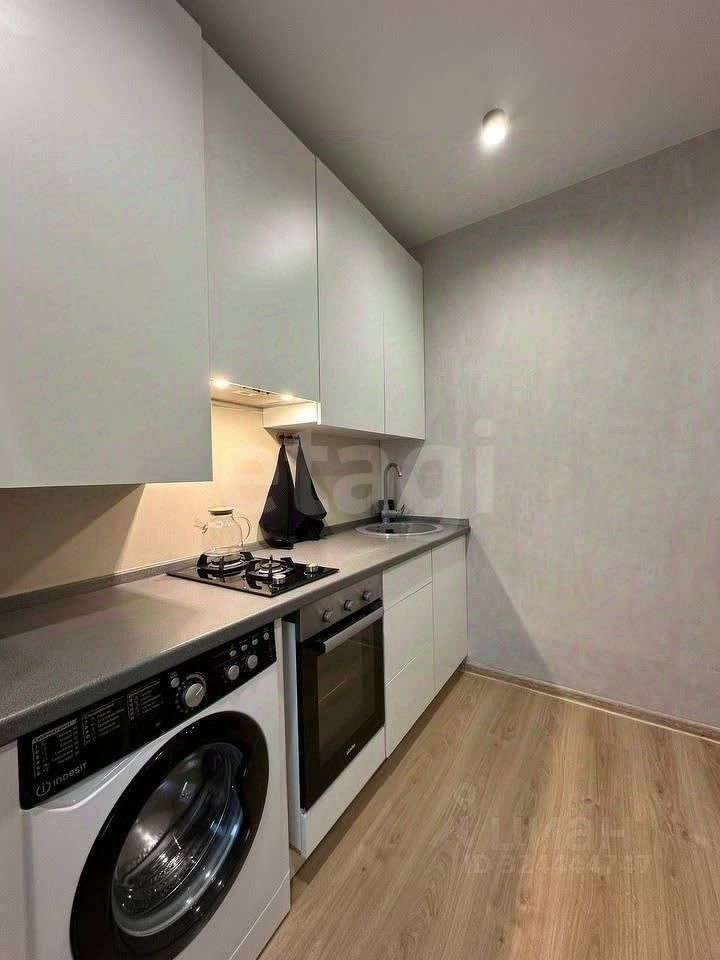 Частично остается мебель и техника: шкаф, кухонный гарнитур с встроенной техникой (вытяжка, варочная панель, духовой шкаф), зеркало в прихожей, мебель и зеркало в ванной.