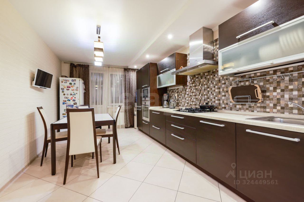 Квартира расположена на восьмом этаже дома, построенного в 1998 году, с хорошей инфраструктурой и развитой транспортной доступностью: рядом остановки общественного транспорта, школы, детские сады, магазины, аптеки и парковая зона. Общая площадь составляет 95,4 кв.м, из них кухня — редкая для типовых планировок — 20 кв.м, что позволяет организовать полноценную обеденную зону и использовать кухню как пространство для общения семьи.