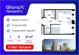 Продаётся студия в строящемся доме (Корпус 1), срок сдачи: II-кв. 2028, общей площадью 31.71 кв.м., на 4 этаже. GloraX Урицкого - это новый квартал, рожденный в сердце Московского района Казани, там, где встречаются энергия большого города и тишина старых парков. Проект создает пространство для тех, кто хочет чувствовать себя в центре событий, но при этом возвращаться домой в атмосферу уюта и спокойствия.