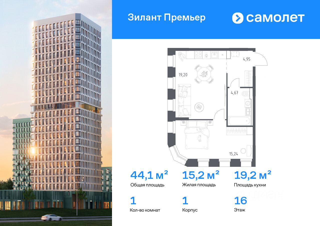Строим кварталы для жизни с заботой о будущем. Предлагается 1-комнатная квартира комфорт-класса 44,06 кв.м в корпусе 1 на 16 этаже, в ЖК "Зилант Премьер"