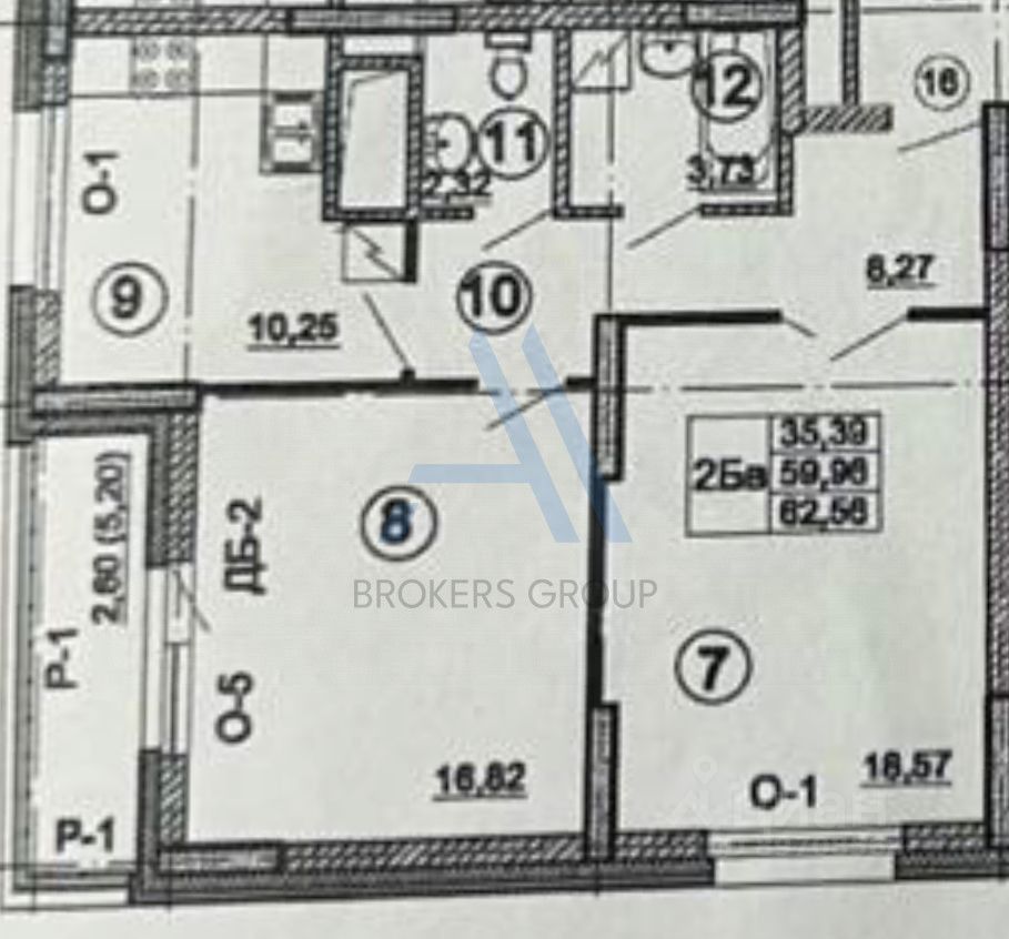 Общая площадь: 62.5 м²