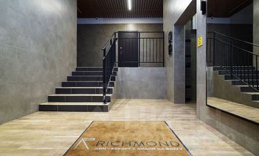 В доме уютные дизайнерские холлы, есть колясочные, грузовые лифты.