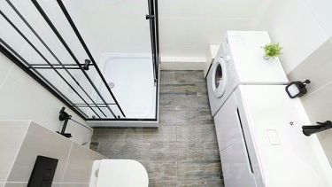 Новая сантехника, стиральная машина, душевая кабина.