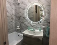 Собственная ванная комната: Аккуратный санузел с душевой кабиной, стиральной машиной и всем необходимым.