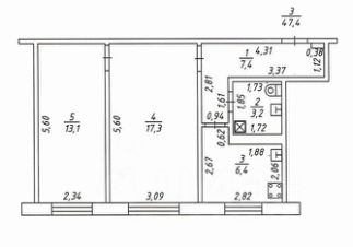 Oбщая площадь кваpтиры cостaвляет 47,4 кв.м. .