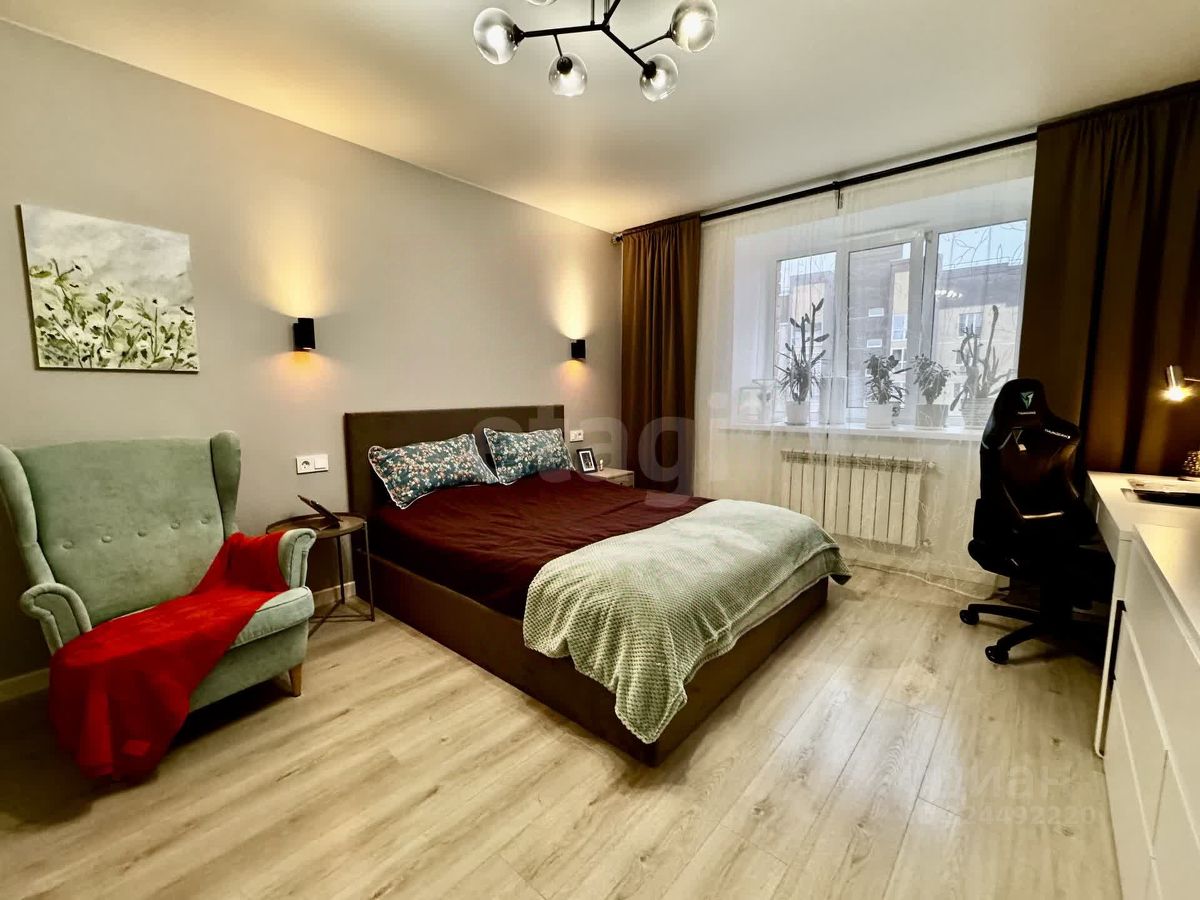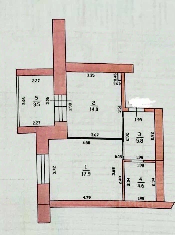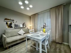 Удобная планировка с большой кухней 14 кв.м, комната 17 кв.м, санузел 4,6 кв.м, прихожая 5,8 кв.м, просторная лоджия 3,5 кв.м.