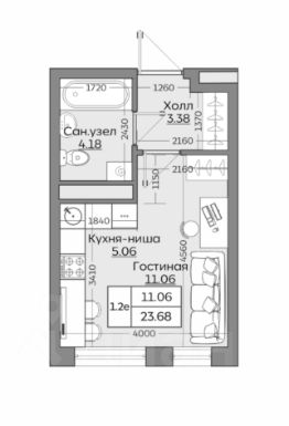 23,68 м²
