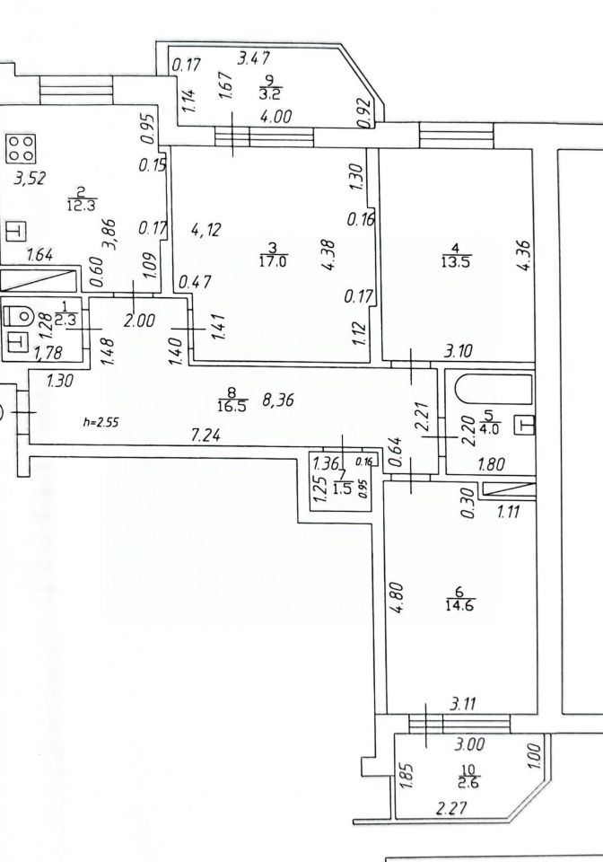 Максимально комфортная планировка квартиры лаконично вмещает 3 полноценные комнаты метражами 17+13.5+14.6 кв.м. В квартире просторные кухня и коридор, раздельный санузел, встроенный шкаф, который используется как дополнительное пространство для хранения, два санузла и 2 огромные остекленные лоджии. Окна выходят на две разные стороны, то есть проект квартиры распашонка.
