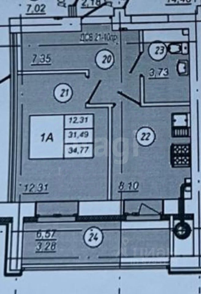 Площадь: 31,8 м² (комната 12 м², кухня 8 м²)