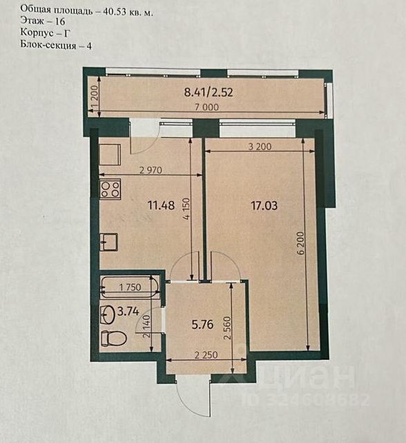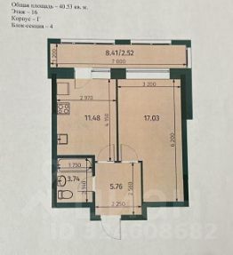 Молодежный вариант / ЖК Яратам, 16 эт. / 16 эт. кирпич. дома S = 40,1 кв.м. Видовая Жилая S = 17,1 кв.м. Кухня = 11,5 кв.м.