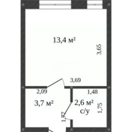 Общая площадь квартиры: 31.4 м²