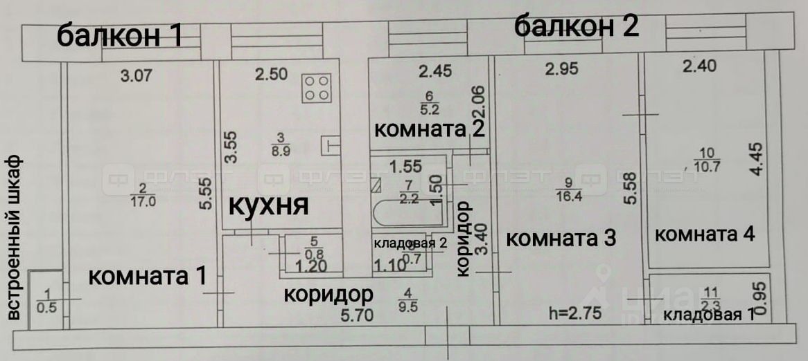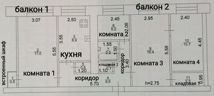 Удачная планировка: 4 комнаты, два балкона, две кладовки, две ниши для встроенного шкафа, раздельный санузел.