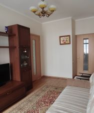 В квартире две кладовые комнаты и два больших встроенных шкафа. На полу ламинат, ванная комната в плитке. Остается практически вся мебель.