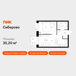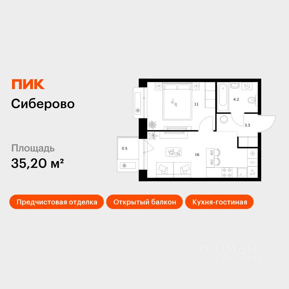 Продаётся 1-комн. квартира площадью 35,2 кв.м на 12 этаже 16 этажного дома (Корпус 3, Секция 7) проекта ПИК Сиберово. Светлый просторный подъезд на уровне земли, функциональная планировка, большие окна, предчистовая отделка.
