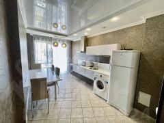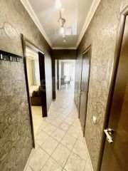 В прихожей и кухне на полу керамогранит, в комнате ламинат. Санузел в керамограните. Качественные деревянные двери, двухуровневый потолок, пластиковые окна с хорошей шумоизоляцией. В доме 4 лифта, 2 грузовых и 2 пассажирских.