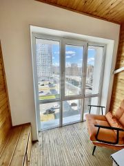 - гостиная 16,4 кв.м. с кондиционером, панорамной лоджией, со шкафом-купе, диваном и отдельным спальным местом;
