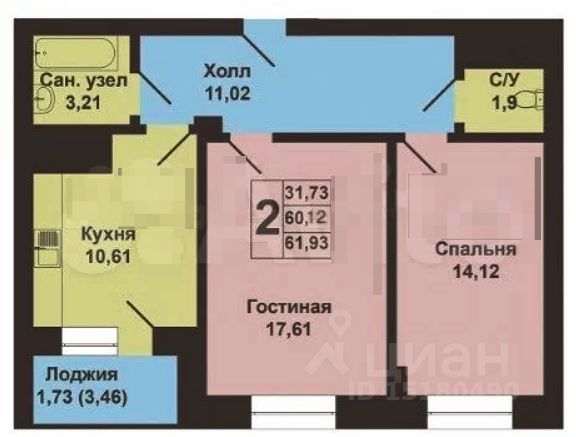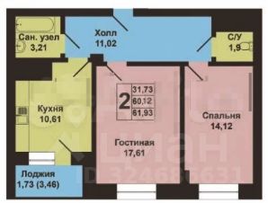 Общая площадь самой квартиры 58,5 м² ( 62 м.кв. с учетом лоджии с панорамным остеклением)