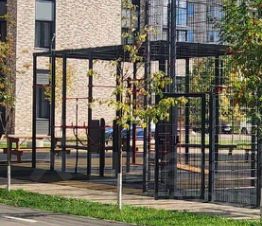 Двор компактный, закрытый, с спортивной и детской площадками.